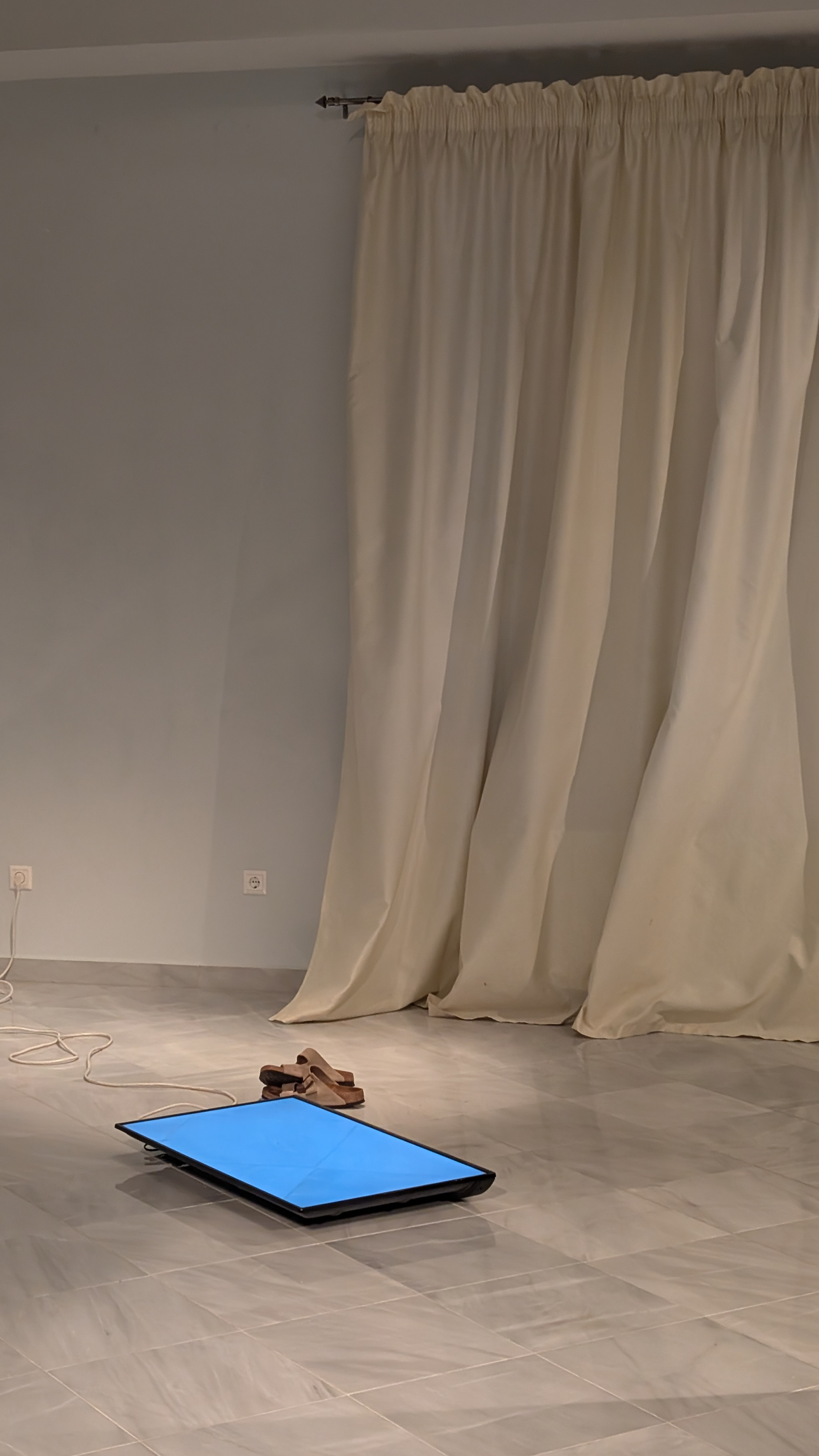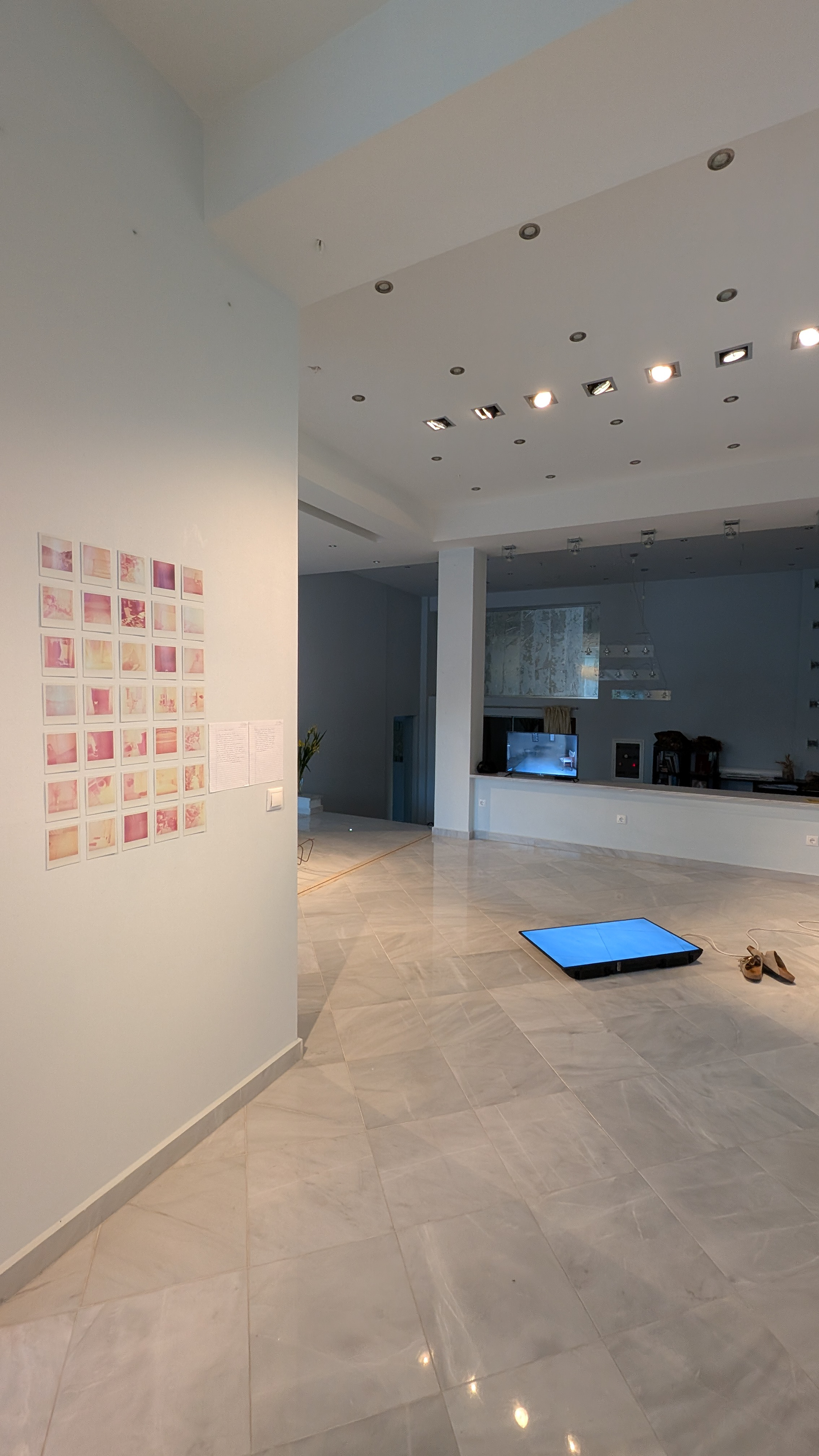 Floor of the Ionion Center for the Arts and Culture, displayed raised off the floor of the Ionion Center for the Arts and Culture. Made as part of the On/InDeterminability residency on Kefalonia Island May 2025 - Mentors: Kurtis Lesick and Barb Sutherland